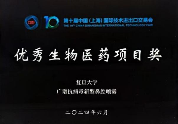 在本次上交会中,足球投注 陆路研究员团队研究成果“广谱抗病毒新型鼻腔喷雾”获“上交会优秀生物医药项目奖”。在上交会高校展区参展的39所高校、数百个项目中,仅有两个高校项目获得该奖项。